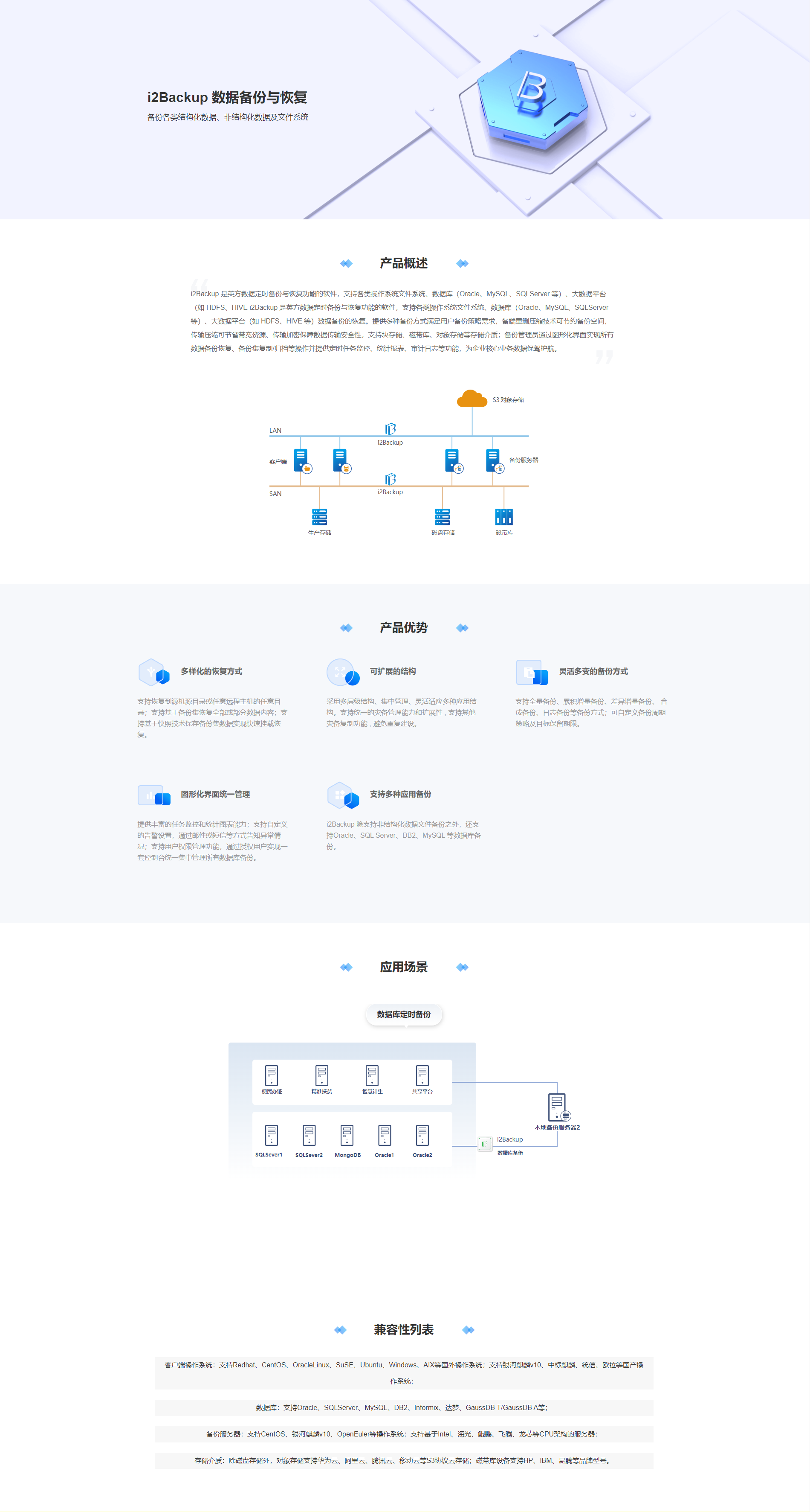 备份各类结构化数据、非结构化数据及文件系统